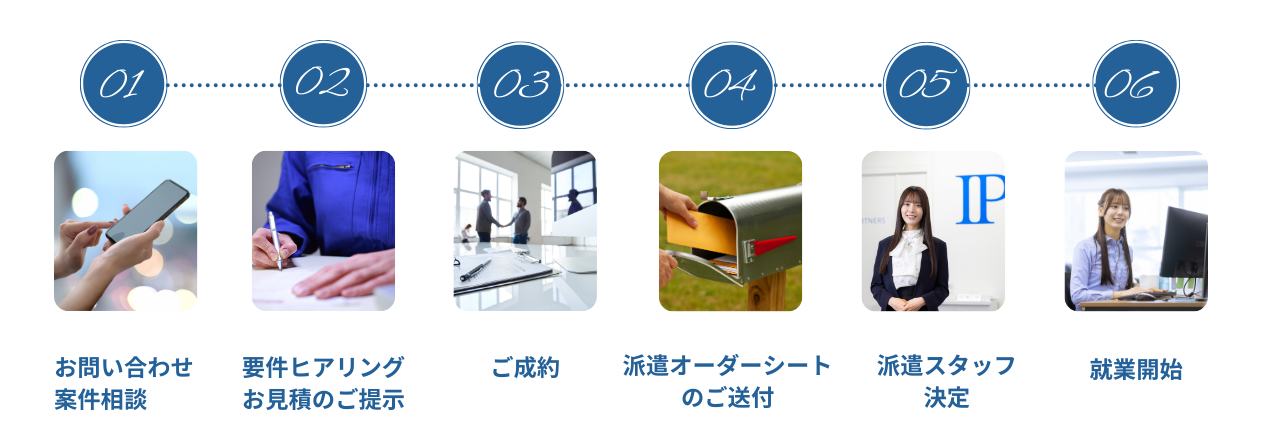 弊社と雇用関係にある派遣スタッフが、派遣先企業の指揮命令のもと業務を行うサービス。迅速に必要な時に、必要なスキルを持つ人材を確保し、企業活動のさまざまなシーンでご活用でき、派遣スタッフの給与支払いや社会保険手続きなども弊社が行いますので、派遣スタッフの労務管理の負担を軽減できます。